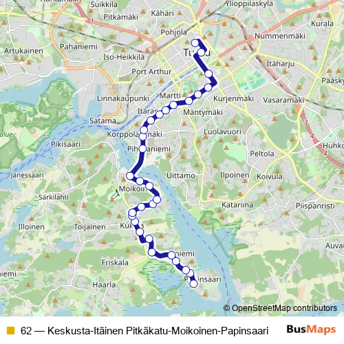 Bus 62 - Keskusta-Itäinen Pitkäkatu-Moikoinen-Papinsaari in Turku: Stops & Timetable