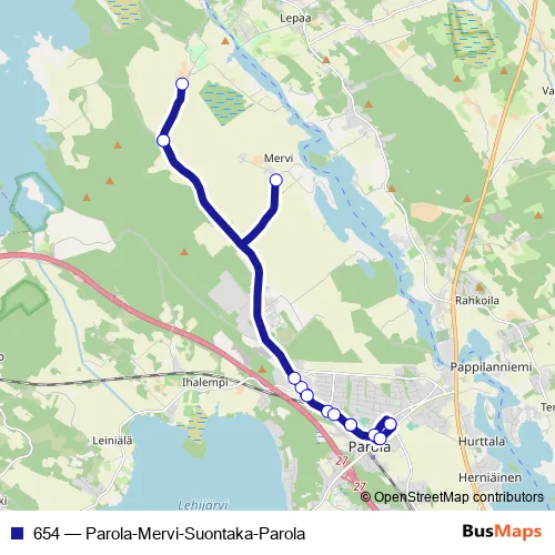 Bus 654 - Parola-Mervi-Suontaka-Parola in Parola: Stops & Timetable