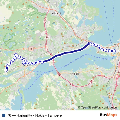 Bus 70 - Harjuniitty - Nokia - Tampere in Nokia: Stops & Timetable