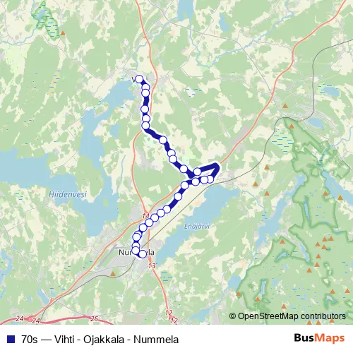 Bus 70s - Vihti - Ojakkala - Nummela Schedule in Vihti