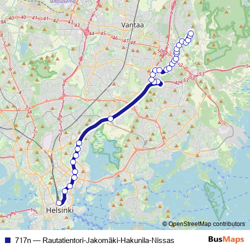 Bus 717n - Rautatientori-Jakomäki-Hakunila-Nissas in Helsinki: Stops & Timetable