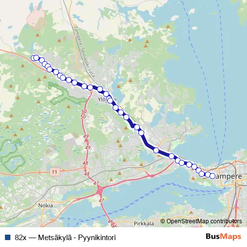 Bus 82x - Metsäkylä - Pyynikintori: Full Schedule in Yloejaervi