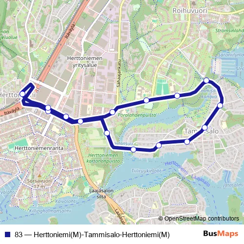 Bus 83 - Herttoniemi(M)-Tammisalo-Herttoniemi(M) in Helsinki: Stops & Timetable