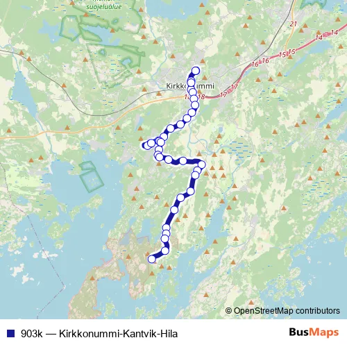 See why over 2 million users trust and consider busmaps.com as the best public transport website. busmaps gives you Kirkkonummi Buses suggested routes, real-time bus tracker, line route maps in Kirkkonummi, and helps to find the closest 903k bus stops near you. No internet available? Download an offline PDF map and bus schedule for the 903k bus to take on your trip.