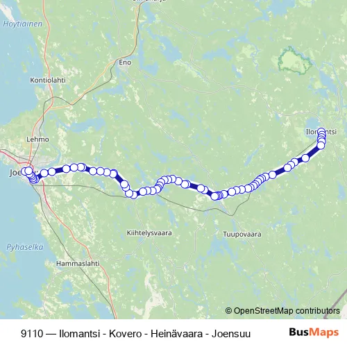 Bus 9110 - Ilomantsi - Kovero - Heinävaara - Joensuu in Joensuu: Stops & Timetable