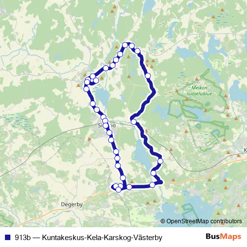 Bus 913b - Kuntakeskus-Kela-Karskog-Västerby: Full Schedule in Siuntio