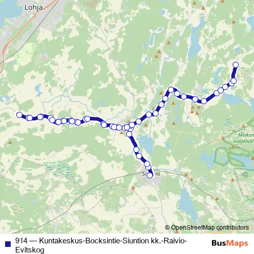 Bus 914 - Kuntakeskus-Bocksintie-Siuntion kk.-Raivio-Evitskog: Full Schedule in Siuntio