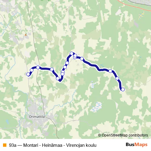 Click here to view the nearest 93a - Montari - Heinämaa - Virenojan koulu bus stop.