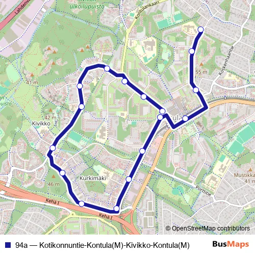 Click here to view the nearest 94a - Kotikonnuntie-Kontula(M)-Kivikko-Kontula(M) bus stop.