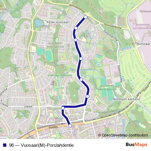 See why over 2 million users trust and consider busmaps.com as the best public transport website. busmaps gives you Helsinki Buses suggested routes, real-time bus tracker, line route maps in Helsinki, and helps to find the closest 96 bus stops near you. No internet available? Download an offline PDF map and bus schedule for the 96 bus to take on your trip.
