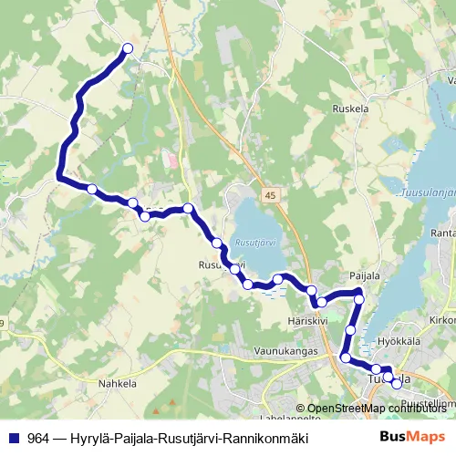 Bus 964 - Hyrylä-Paijala-Rusutjärvi-Rannikonmäki Schedule in Tuusula