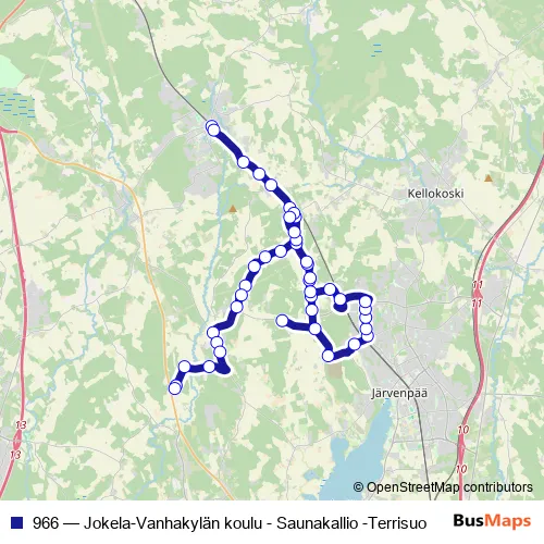 Bus 966 - Jokela-Vanhakylän koulu - Saunakallio -Terrisuo: Full Schedule in Jaervenpaeae
