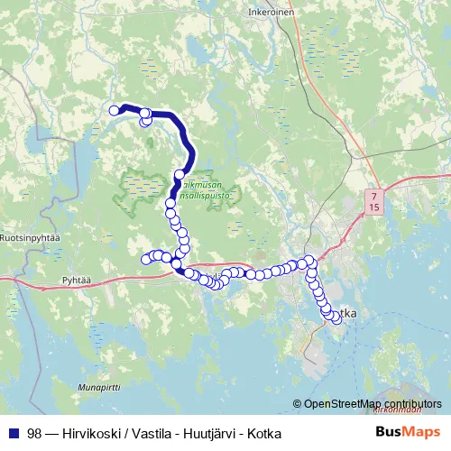 Click here to view the nearest 98 - Hirvikoski / Vastila - Huutjärvi - Kotka bus stop.