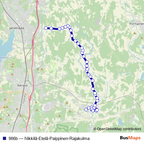 Bus 986b - Nikkilä-Etelä-Paippinen-Rajakulma: Full Schedule in Nickby
