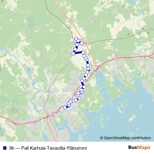 Bus 9b - Pali Karhula-Tavastila-Ylänummi in Kotka: Stops & Timetable