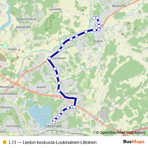 Click here to view the nearest L13 - Liedon keskusta-Loukinainen-Littoinen bus stop.