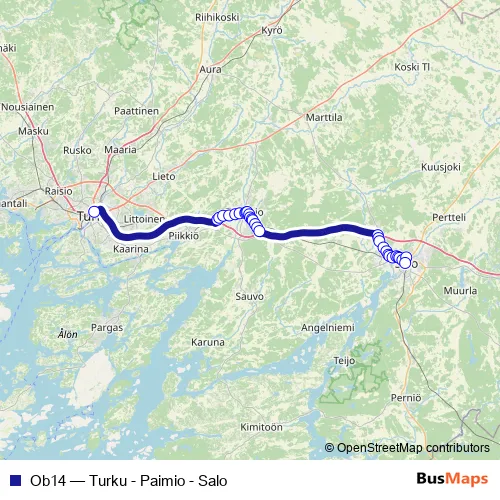 See why over 2 million users trust and consider busmaps.com as the best public transport website. busmaps gives you Paimio Buses suggested routes, real-time bus tracker, line route maps in Paimio, and helps to find the closest Ob14 bus stops near you. No internet available? Download an offline PDF map and bus schedule for the Ob14 bus to take on your trip.