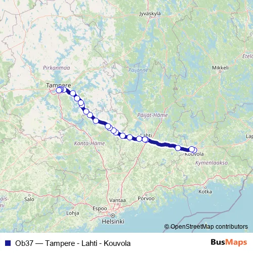 Bus Ob37 - Tampere - Lahti - Kouvola: Full Schedule in Tampere