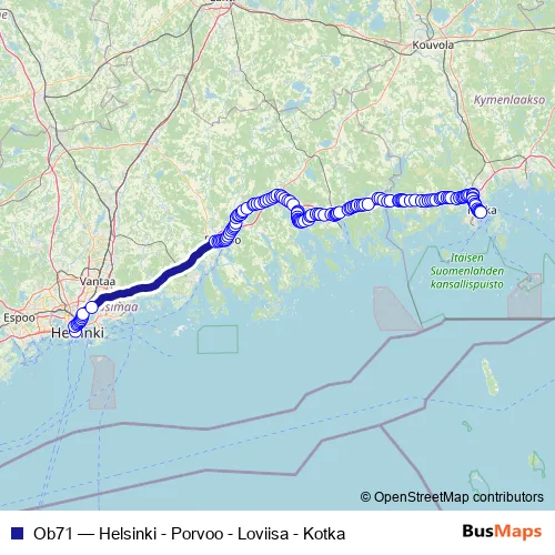 Bus Ob71 - Helsinki - Porvoo - Loviisa - Kotka: Full Schedule in Perna