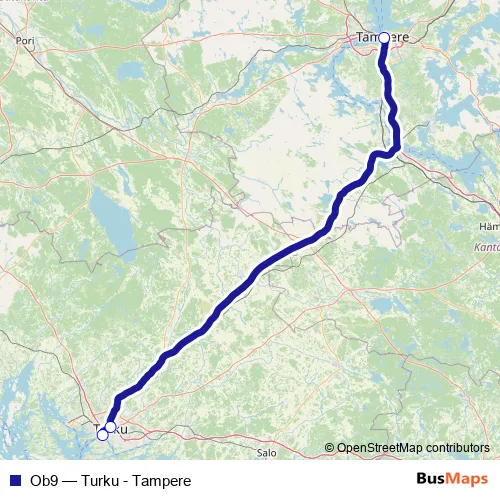 The first stop of the Ob9 bus route is 5 and the last stop is 3. Ob9 (Turku - Tampere) is operational during everyday.