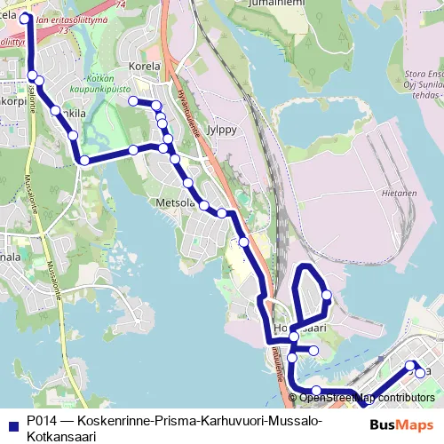 Bus P014 - Koskenrinne-Prisma-Karhuvuori-Mussalo-Kotkansaari Schedule in Kotka