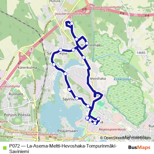 Bus P072 - La-Asema-Meltti-Hevoshaka-Tompurinmäki-Saviniemi: Full Schedule in Hamina