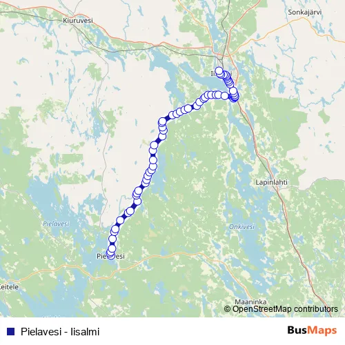 See why over 2 million users trust and consider busmaps.com as the best public transport website. busmaps gives you Iisalmi Buses suggested routes, real-time bus tracker, line route maps in Iisalmi, and helps to find the closest Pielavesi - Iisalmi bus stops near you. No internet available? Download an offline PDF map and bus schedule for the Pielavesi - Iisalmi bus to take on your trip.