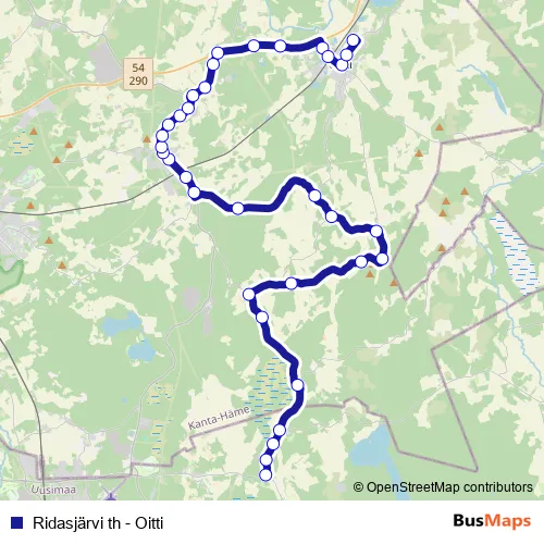 Additional information: Ridasjärvi th - Oitti has 34 stops and the total trip duration for this route is approximately 50 minutes.