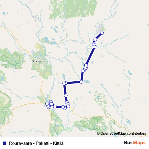 Rouravaara - Pakatti - Kittilä bus Route Map