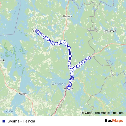 Additional information: Sysmä - Heinola has 71 stops and the total trip duration for this route is approximately 75 minutes.