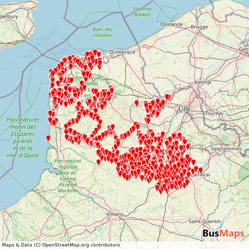 Transit Data for France by CAR HDF 62 Com with Stops on Map