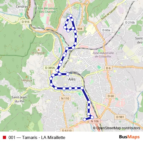Bus 001 - Tamaris - LA Miraillette: Full Schedule in Ales