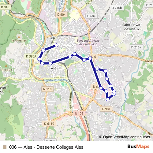 See why over 2 million users trust and consider busmaps.com as the best public transport website. busmaps gives you Ales Buses suggested routes, real-time bus tracker, line route maps in Ales, and helps to find the closest 006 bus stops near you. No internet available? Download an offline PDF map and bus schedule for the 006 bus to take on your trip.