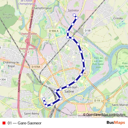 The first stop of the 01 bus route is Gare and the last stop is Saôneor. 01 (Gare-Saoneor) is operational during everyday.