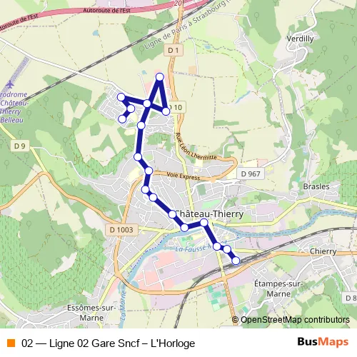 See why over 2 million users trust and consider busmaps.com as the best public transport website. busmaps gives you Chateau-Thierry Buses suggested routes, real-time bus tracker, line route maps in Chateau-Thierry, and helps to find the closest 02 bus stops near you. No internet available? Download an offline PDF map and bus schedule for the 02 bus to take on your trip.