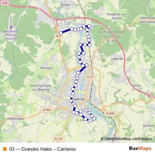 Bus 03 - Grandes Haies – Carrieres in Auxerre: Stops & Timetable