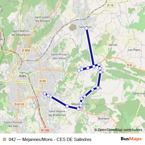 Bus 042 - Mejannes/Mons - CES DE Salindres: Full Schedule in Ales