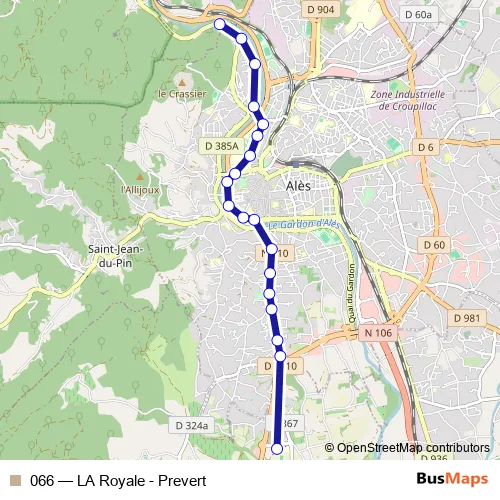 The first stop of the 066 bus route is Lycee Prevert and the last stop is La Royale. 066 (LA Royale - Prevert) is operational during on weekdays.