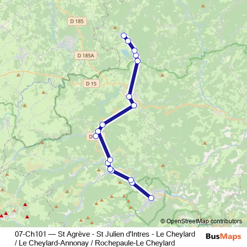 Rue Jacques Dondoux - Rue de la Cabanette - Route du Cheylard - Route de Saint-Agrève - Rue du Garail - Rue du Pont - Route de Malafosse - Rue Louis Vincent - Avenue de Chabannes