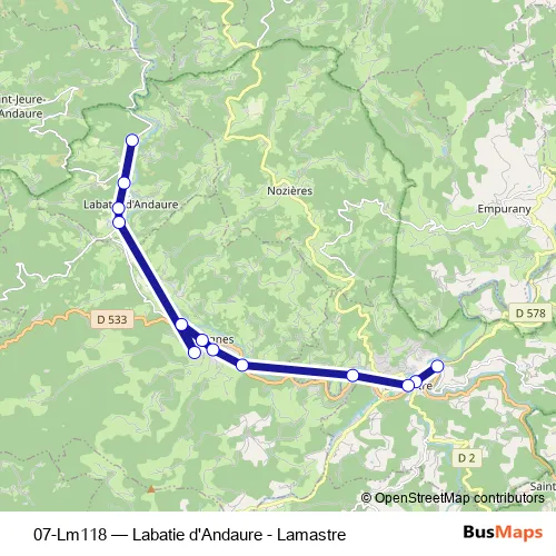 Click here to view the nearest 07-Lm118 - Labatie d'Andaure - Lamastre bus stop.