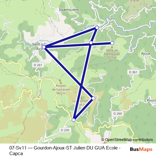 Bus 07-Sv11 - Gourdon-Ajoux-ST Julien DU GUA Ecole - Capca: Full Schedule in Privas