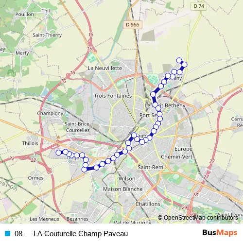 Bus 08 - LA Couturelle Champ Paveau: Full Schedule in Reims