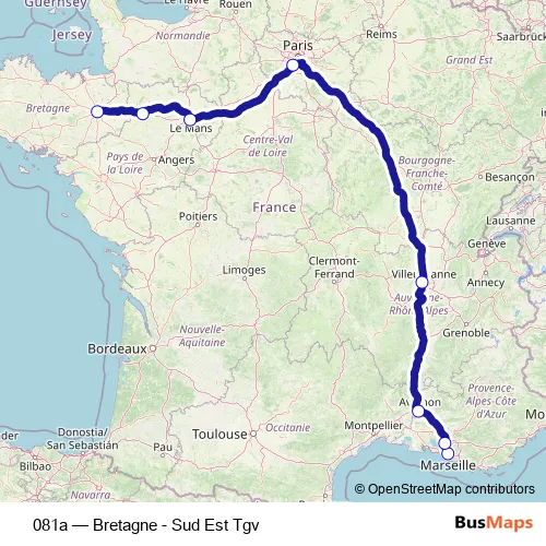 Click here to view the nearest 081a - Bretagne - Sud Est Tgv rail stop.