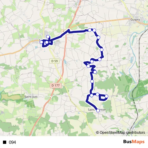 The first stop of the 094 bus route is Primaire public and the last stop is Centre. 094 is operational during on weekdays.