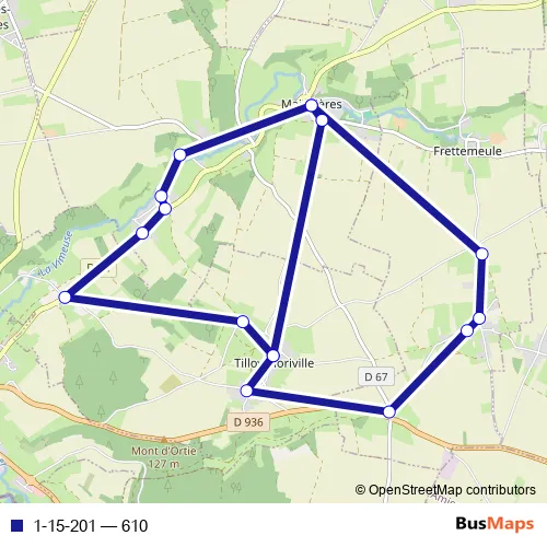 The first stop of the 1-15-201 bus route is Maisnieres - Ecole and the last stop is Tilloy-Floriville - Ecole. 1-15-201 (610) is operational during everyday.