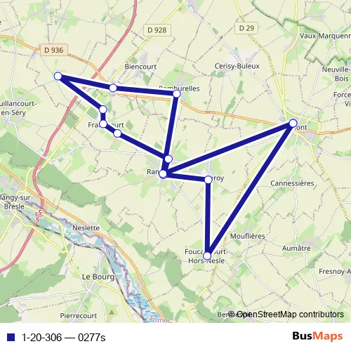 The first stop of the 1-20-306 bus route is Oisemont - Parking RPC Primaires and the last stop is Oisemont - Parking RPC Primaires. 1-20-306 (0277s) is operational during everyday.