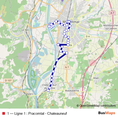Bus 1 - Ligne 1 : Pracomtal - Chateauneuf: Full Schedule in Montelimar