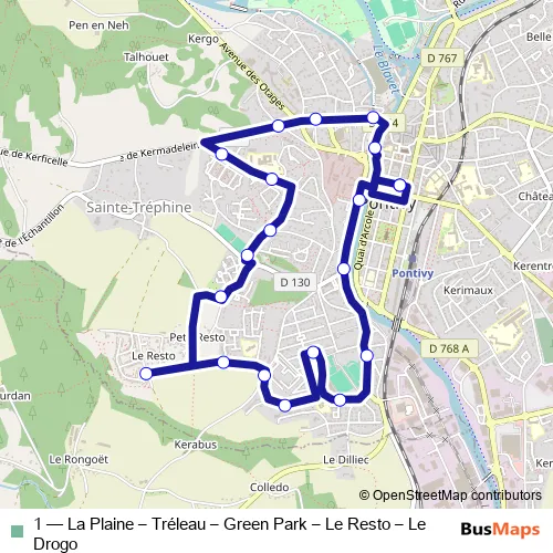 1 (La Plaine – Tréleau – Green Park – Le Resto – Le Drogo) Bus in Pontivy
