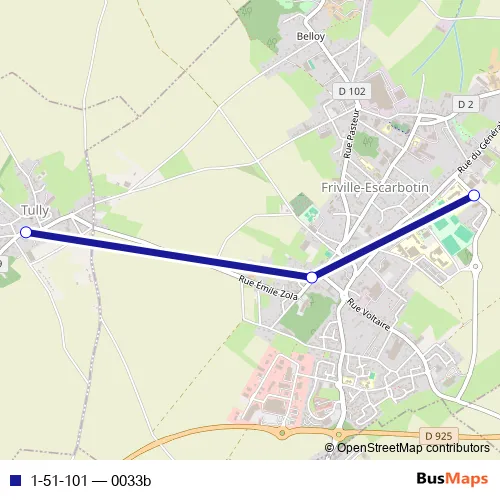The first stop of the 1-51-101 bus route is Tully - Abribus and the last stop is Friville-Escarbotin - Collège La Rose des Vents. 1-51-101 (0033b) is operational during on weekdays.