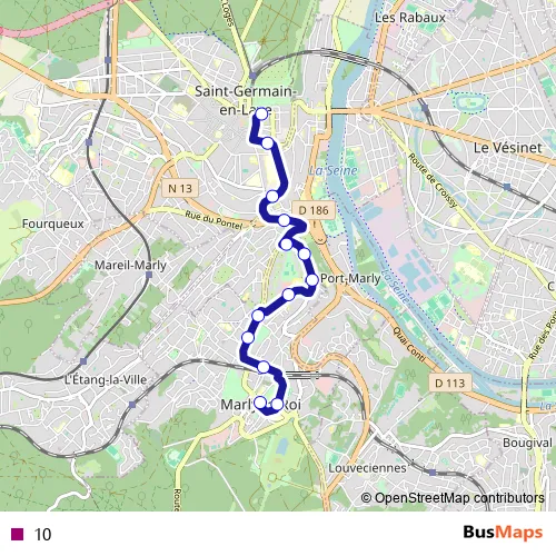 See why over 2 million users trust and consider busmaps.com as the best public transport website. busmaps gives you Saint-Germain-en-Laye Buses suggested routes, real-time bus tracker, line route maps in Saint-Germain-en-Laye, and helps to find the closest 10 bus stops near you. No internet available? Download an offline PDF map and bus schedule for the 10 bus to take on your trip.